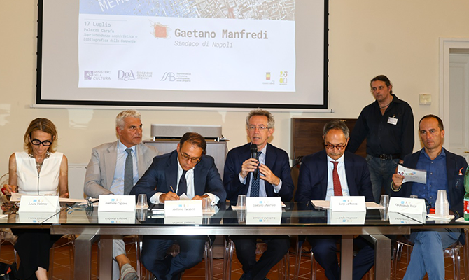 La presentazione del progetto si è tenuta oggi in conferenza stampa alla presenza del sindaco Gaetano Manfredi, del soprintendente Gabriele Capone, dell’Assessora al Turismo e alle Attività Produttive con delega alle celebrazioni per Napoli 2500 Teresa Armato e della direttrice artistica di Napoli 2500 Laura Valente, con gli interventi tra gli altri di Luigi La Rocca, Capo Dipartimento per la tutela del Patrimonio Culturale, Antonio Leo Tarasco, Direttore Generale Archivi del Ministero della Cultura e Ferdinando Tozzi, Delegato del Sindaco per l’industria musicale e l’audiovisivo del Comune di Napoli.