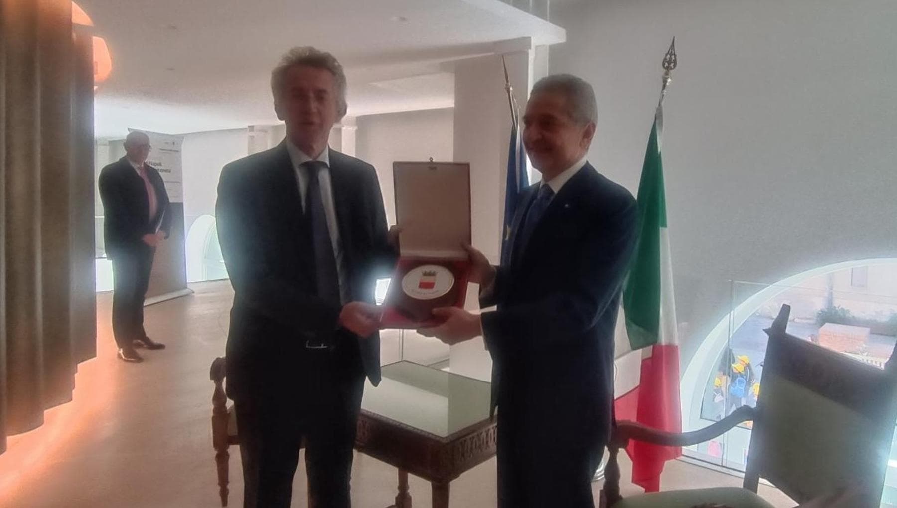 Proprio in riferimento alla delicata fase internazionale il sindaco Gaetano Manfredi, consegnando al governatore Panetta una targa con il gagliardetto di Napoli, dice: “Con l’augurio che lo spirito di Napoli lo accompagni in un momento così difficile”. Poi nel suo intervento aggiunge: “So che il governatore ama particolarmente Napoli”. Il motivo lo spiega Panetta nel chiudere il suo intervento: “L’oro di Napoli è qualcosa che non si misura a peso. È la ricchezza umana e la dignità del popolo napoletano, soprattutto di quello dei quartieri più poveri. È la capacità di adattarsi, soprattutto nei momenti più duri. Ed è la fiducia nel futuro, ostinata e quasi inspiegabile, che nasce da questa capacità”.